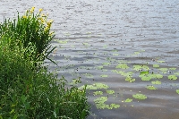 An Wassern stehen Gräser